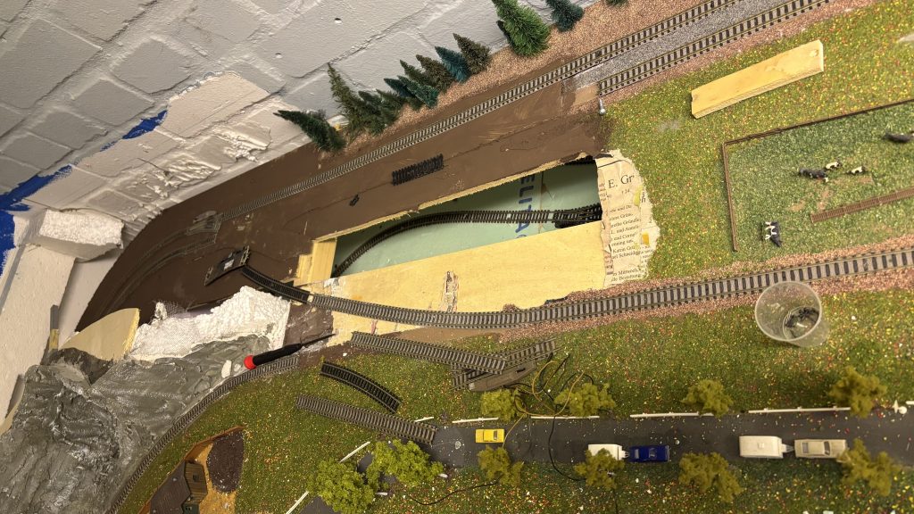 Thomas hat angefangen die Nebenbahn mit unserer Hauptstrecke zu verbinden und Andreas unsere Elektrik für die Digitalfahrt einzurichten.